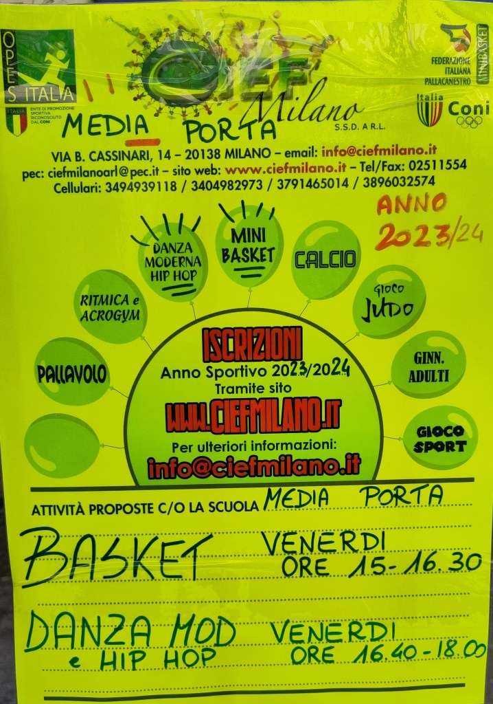 Qui riportiamo i vari volantini e informazioni dei corsi presenti nelle nostre scuole per l’anno 2023-2024. (se sei una associazione e offri corsi nelle nostre scuole e vuoi pubblicare qui il tuo volantino scrivici a info@genitoriloria.it)