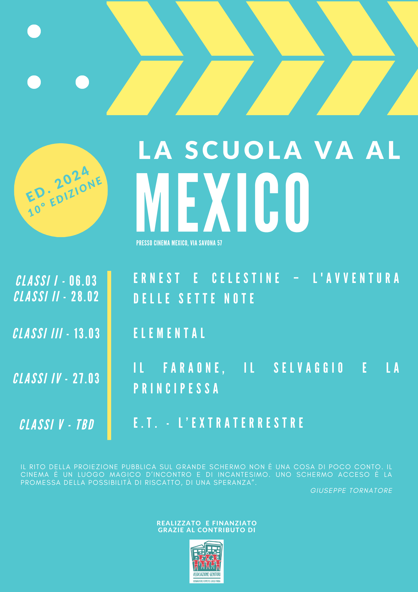 È arrivata la 10a edizione della rassegna “La Scuola va al Mexico”, realizzata in collaborazione con il Cinema Mexico in via Savona a cui prendono parte tutte le classi primarie dei plessi Foppette e Bergognone.