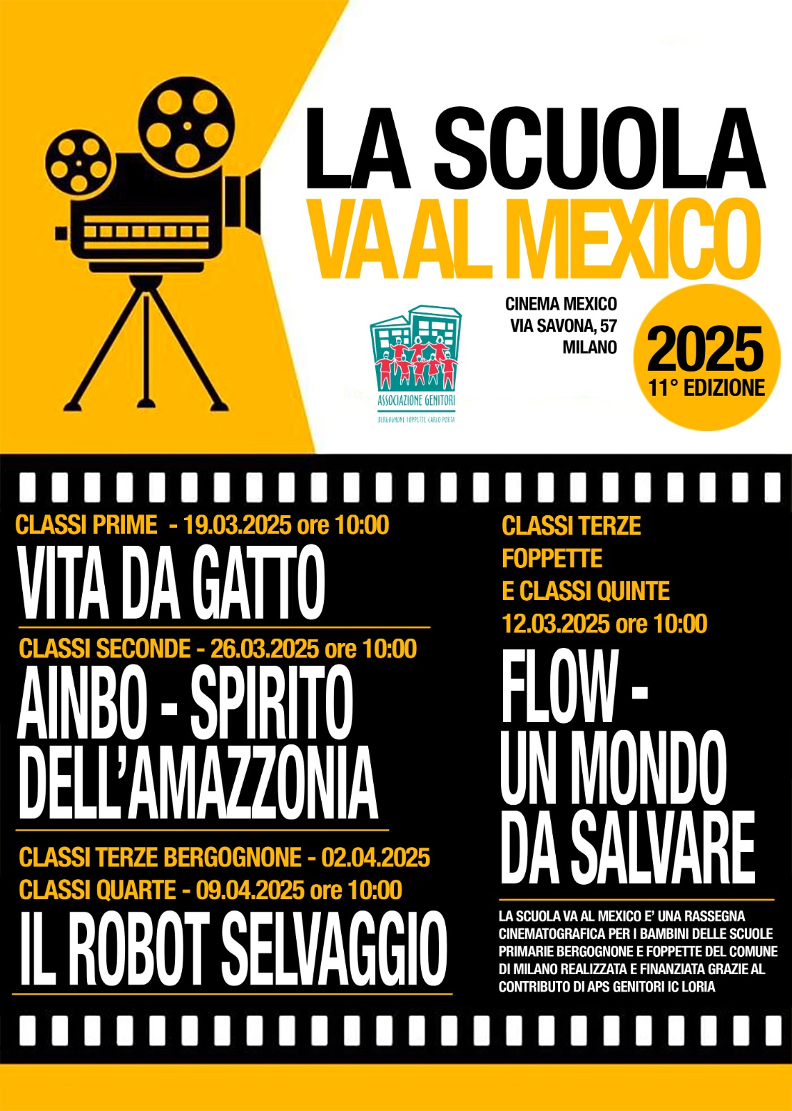 Anche quest’anno ritorna la rassegna, finanziata interamente da parte dell’APS Genitori IC Loria e svolta in collaborazione con Cinema Mexico in via Savona, che permette a tutte le classi primarie dei plessi Foppette e Bergognone di individuare tra le pellicole a disposizione quelle maggiormente attinenti ai percorsi didattici dell’anno in corso e di vivere l’esperienza di una proiezione dedicata al cinema, durante l’orario scolastico.