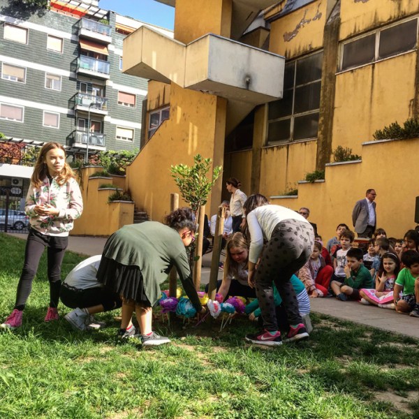 Foppette. Abbiamo piantato un corbezzolo per ricordare la maestra Zani