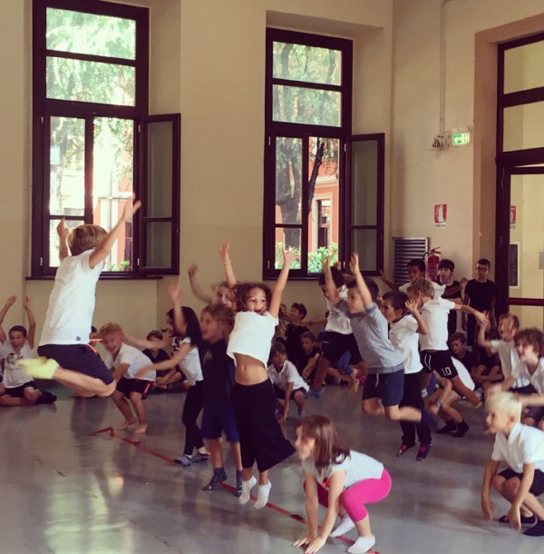 Una foto-cartolina dalla prima settimana del campus di fine estate nella scuola di via Bergognone. Quelli che vedete sono i 21 bambini presenti e il coordinatore del campus, Marco Cavallari. Lunedì 2 settembre prenderà il via la seconda settimana con ben altri numeri. Gli iscritti sono 134!