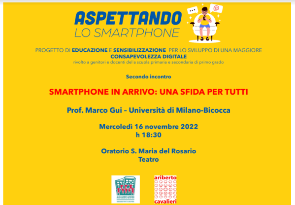 Grazie a tutti i genitori, presidi, docenti e rappresentanti delle istituzioni che hanno partecipato all’incontro di mercoledì 16 novembre “Smartphone in arrivo: una sfida per tutti” tenutosi con la preziosa partecipazione del Prof. Marco Gui. Ci auguriamo che il convegno sia riuscito a mettere a fuoco meglio i rischi che corrono i nostri figli con... Continua a leggere →